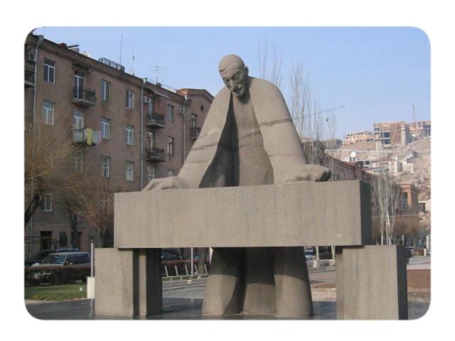 Tumanyan is usually regarded in Armenian circles as “All-Armenian poet”. He earned this title when the Catholicos of Armenia had ordered that Armenian refugees from the west not enter certain areas of his church and house, since he is considered to be “The Catholicos of All Armenians”. Tumanyan in response declined that decision claiming that the refugees could seek relief in the Catholicos’ quarters under order of “The Poet of All Armenians” He created lyrics, fables, epic poems and translations into Armenian of Byron, Goethe and Pushkin.