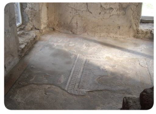 The ruins of the huge palace and baths, built in the 3rd century in the Roman style, are very interesting. The baths were warmed by heated air which passed through ceramic pipes laid under the floor. In the semi circular part of the anteroom, a section of the mosaic floor has remained intact. A story from Greek mythology was taken for a design and was laid out in stones of 15 colors. There is an inscription in Greek which never fails to mystify visitors. It says: "We worked without remuneration".