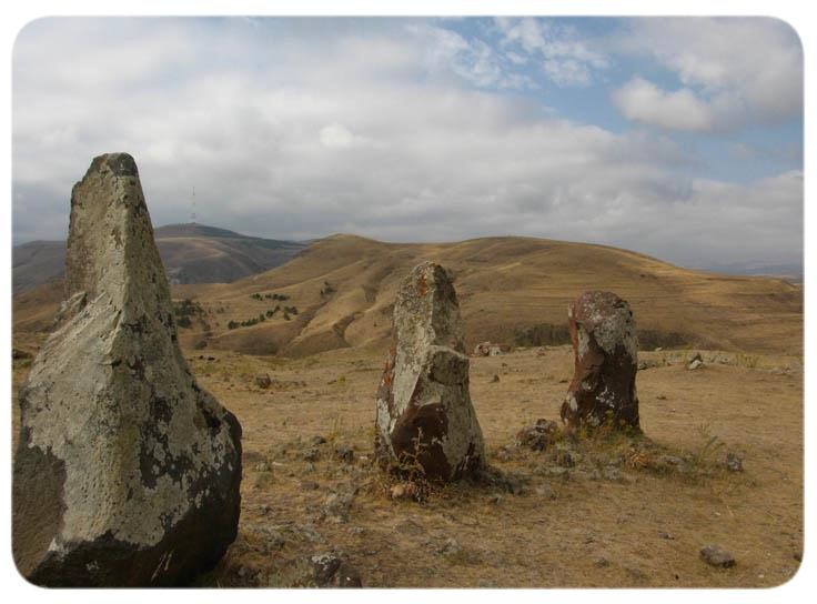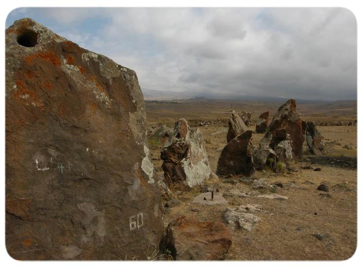 Famous professor and world known specialist on stone monuments Gerald. S. Hawkins had acknowledged that Karahunj is 7,500 years old, which means that it is 3,500 years older than British Stonehenge, older than Karnak in France and Newgrenge in Ireland. It may prove what some people already suspect - that Armenia is the cradle of the civilization. On the territory of 7 hectares, 223 huge vertical stones like soldiers stand on the hill, some with holes pierced in them. The rough- cut stones aligned irregularly for a purpose, 84 were found to have holes. Many unique astronomic instruments consisting of one, two or three stones were identified and using these many observations of the Sun, the Moon and the stars were carried out.