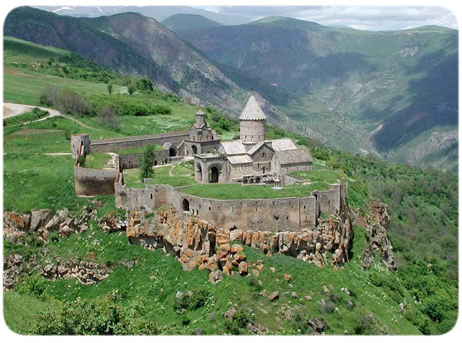 Tatev monastery is situated near the village of the same name in part of Zangezur-ancient Syunik. The monastery was founded in the ninth century in place of a tabernacle well- known in ancient times. The strategically advantageous location on a cape formed the construction of a mighty defense complex there. Tatev monuments stand out for high quality of building work. At one time Tatev was the political center of Syunik principality. In the 10th century it had a population of 1,000 and controlled numerous villages. In the 13th century it owned 680 villages, though some of the hippie villages fought hard to stay out of Tatev’s hold.